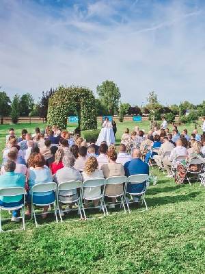 Le domaine dispose également d’un magnifique terrain verdoyant, parfait pour sublimer une cérémonie laïque ou organiser des moments uniques en plein air.