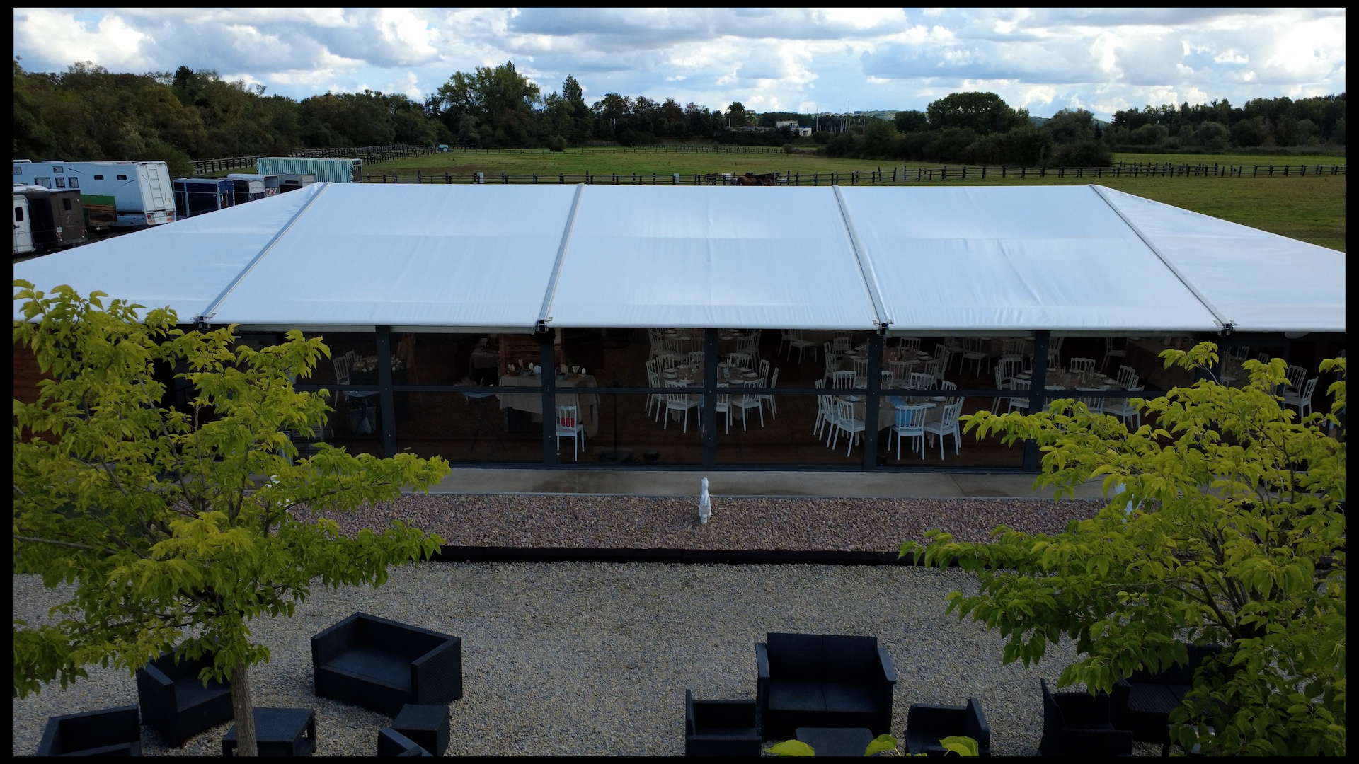 À quelques pas d’une élégante écurie, ce lieu raffiné conjugue charme bucolique et esprit contemporain pour accueillir vos plus beaux événements.